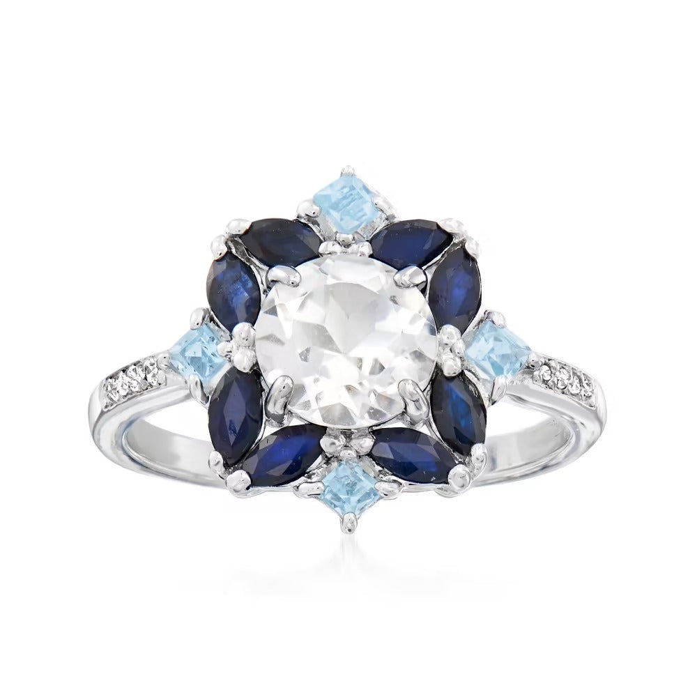 1.78 ctw. White and Blue Topaz and .80 ctw. Sapphire Ring in Sterling Silver