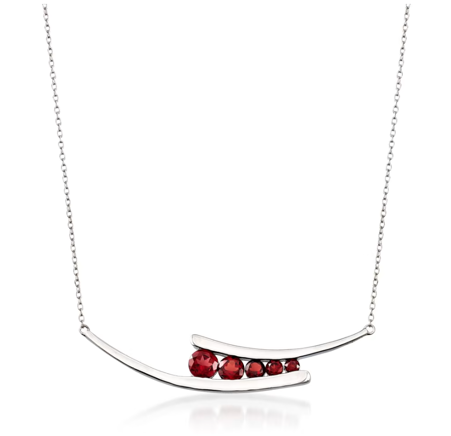 1.85 ctw Garnet Curved Necklace in Sterling Silver