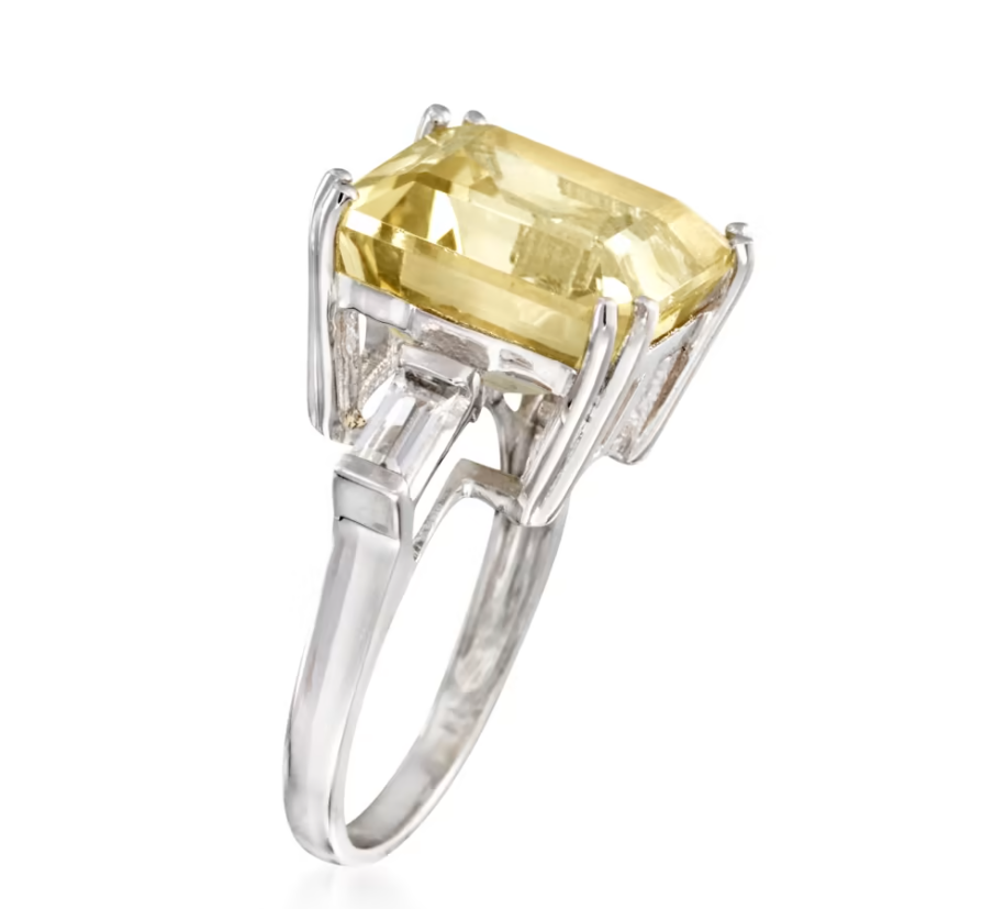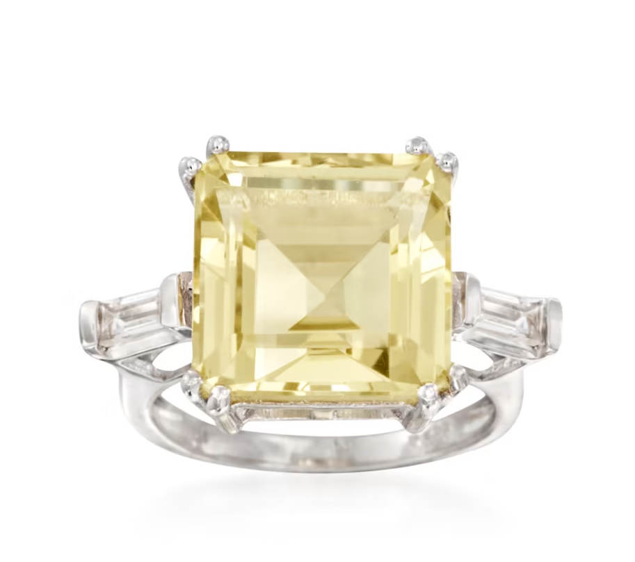 10.00 Carat Lemon Topaz and .60 ctw White Topaz Ring in Sterling Silver