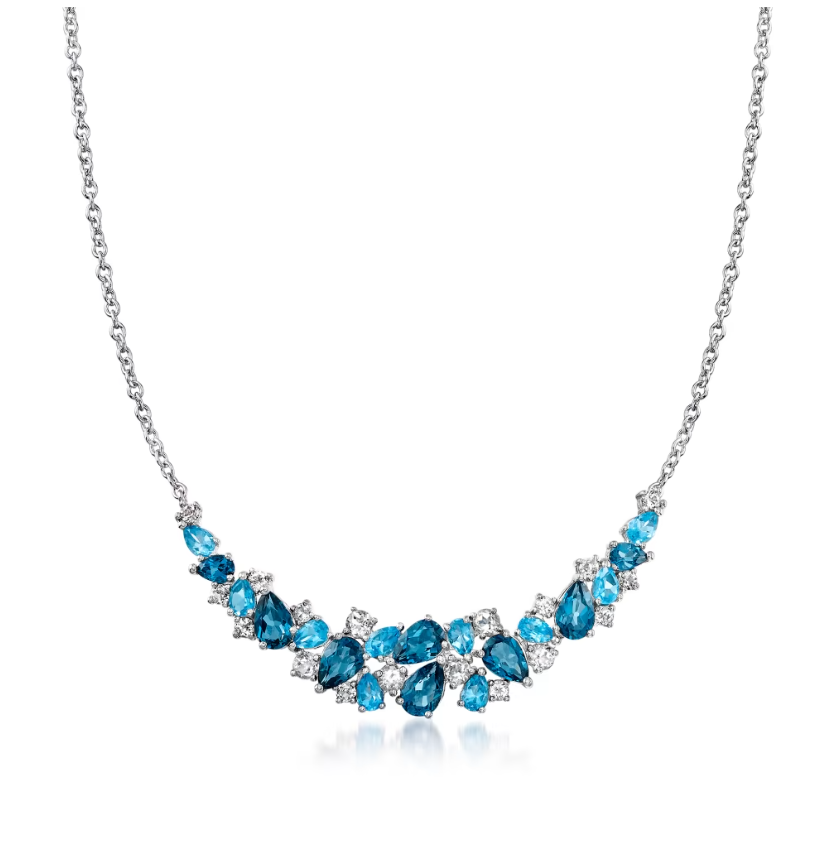 12.10 ctw London, Swiss Blue and White Topaz Collar Necklace in Sterling Silver