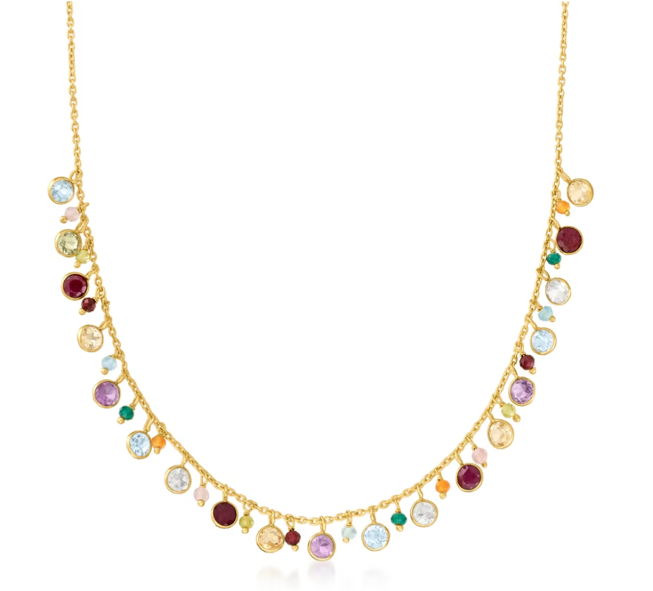 12.10 ctw Multi-Gemstone Necklace in 18kt Gold Over Sterling. 18"
