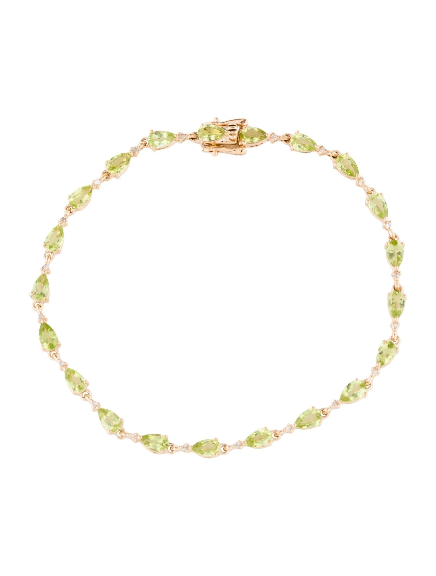 - Featuring 4.35 Carat Pear Modified Brilliant Peridot