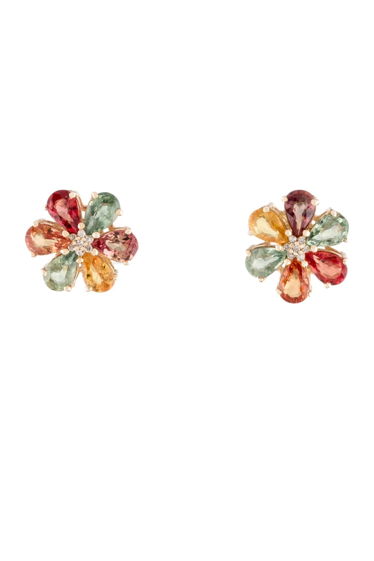 14K 6.00ctw Sapphire & Diamond Floral Stud Earrings