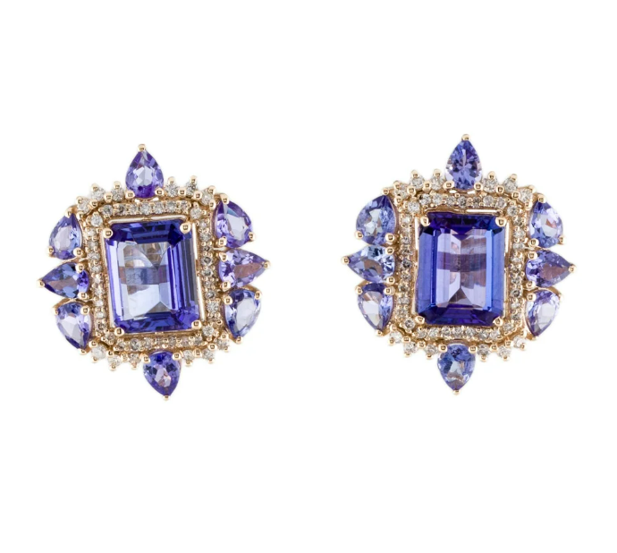 14K 6.60ctw Tanzanite & Diamond Earrings