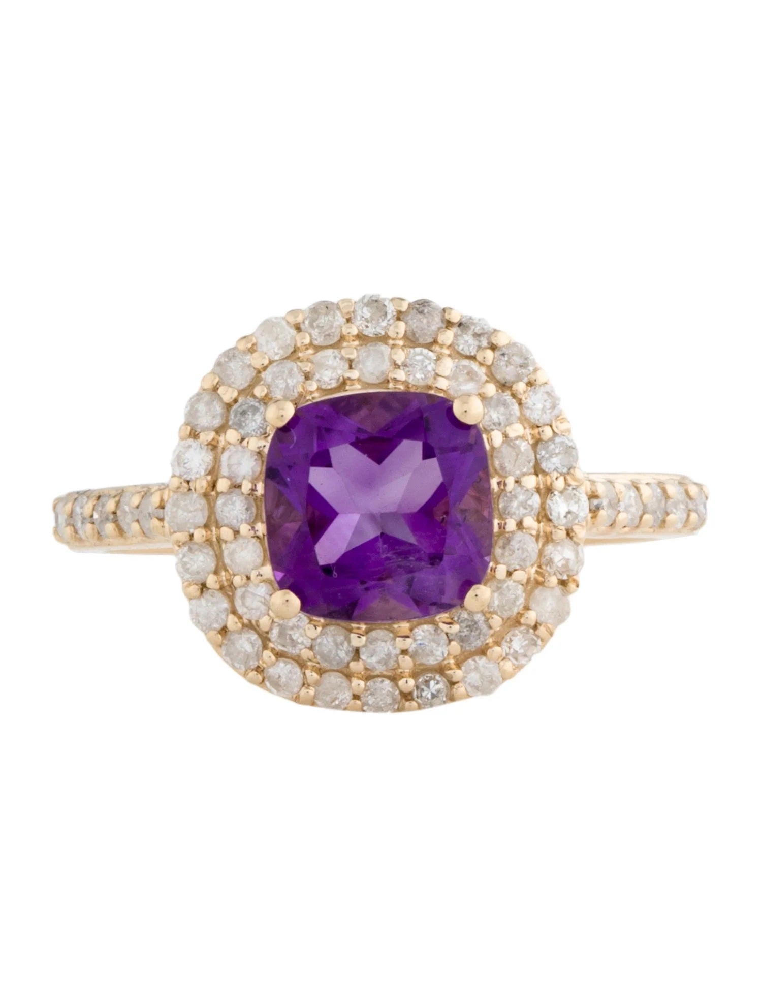 - Featuring 1.33 Carat Cushion Modified Brilliant Amethyst