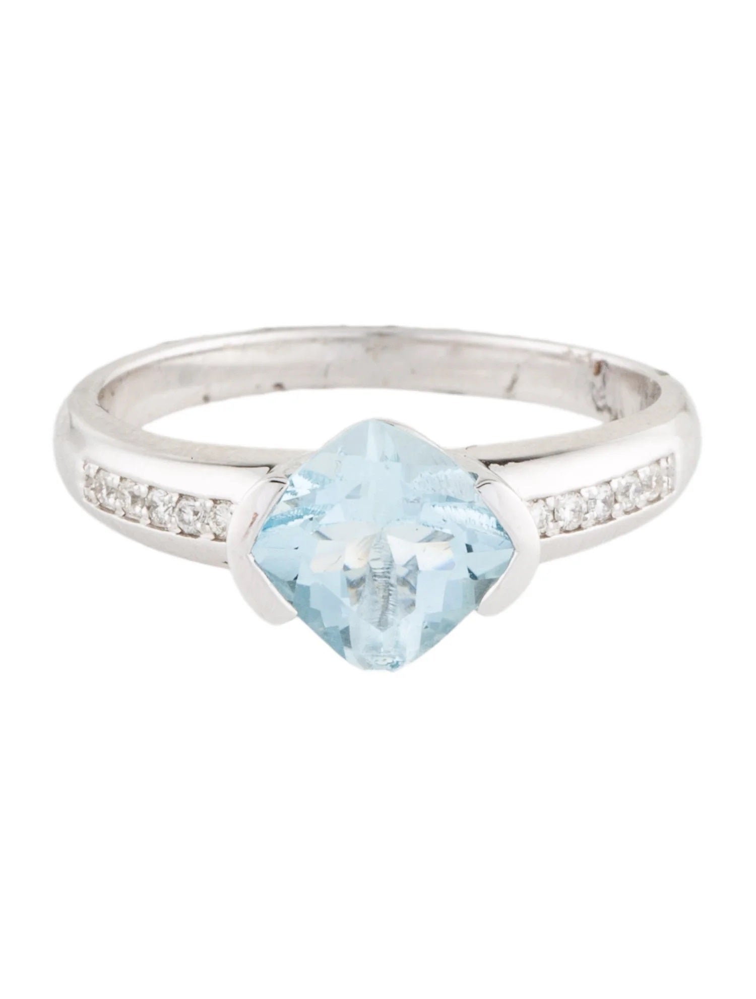 - Featuring 1.15 Carat Cushion Modified Brilliant Aquamarine