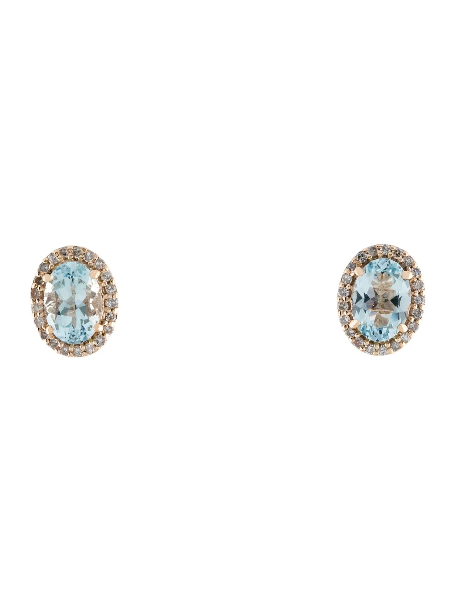 14K Aquamarine & Diamond Stud Earrings