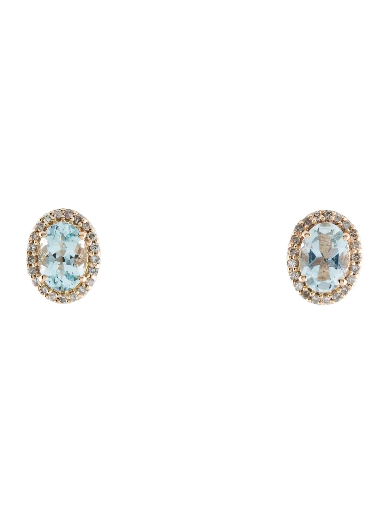 14K Aquamarine & Diamond Stud Earrings