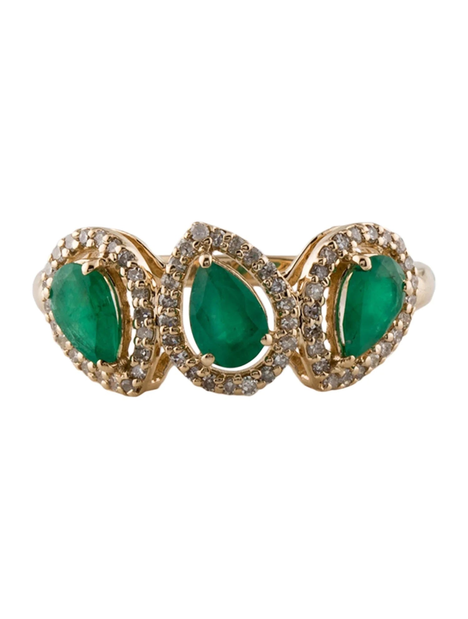 - Featuring 0.88 Carat Pear Brilliant Emerald