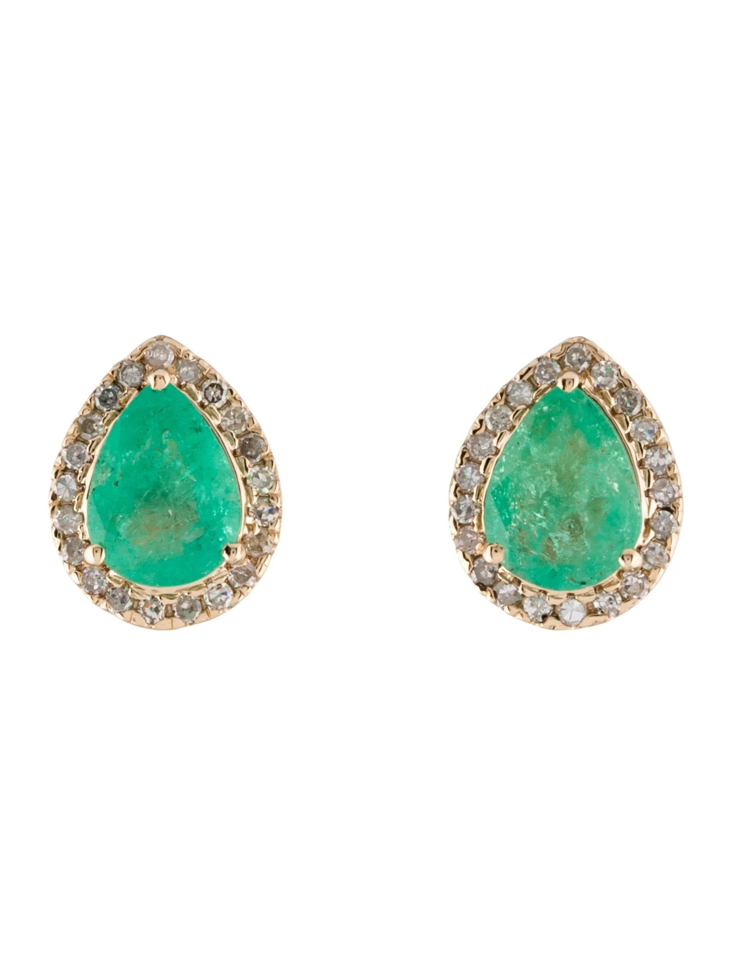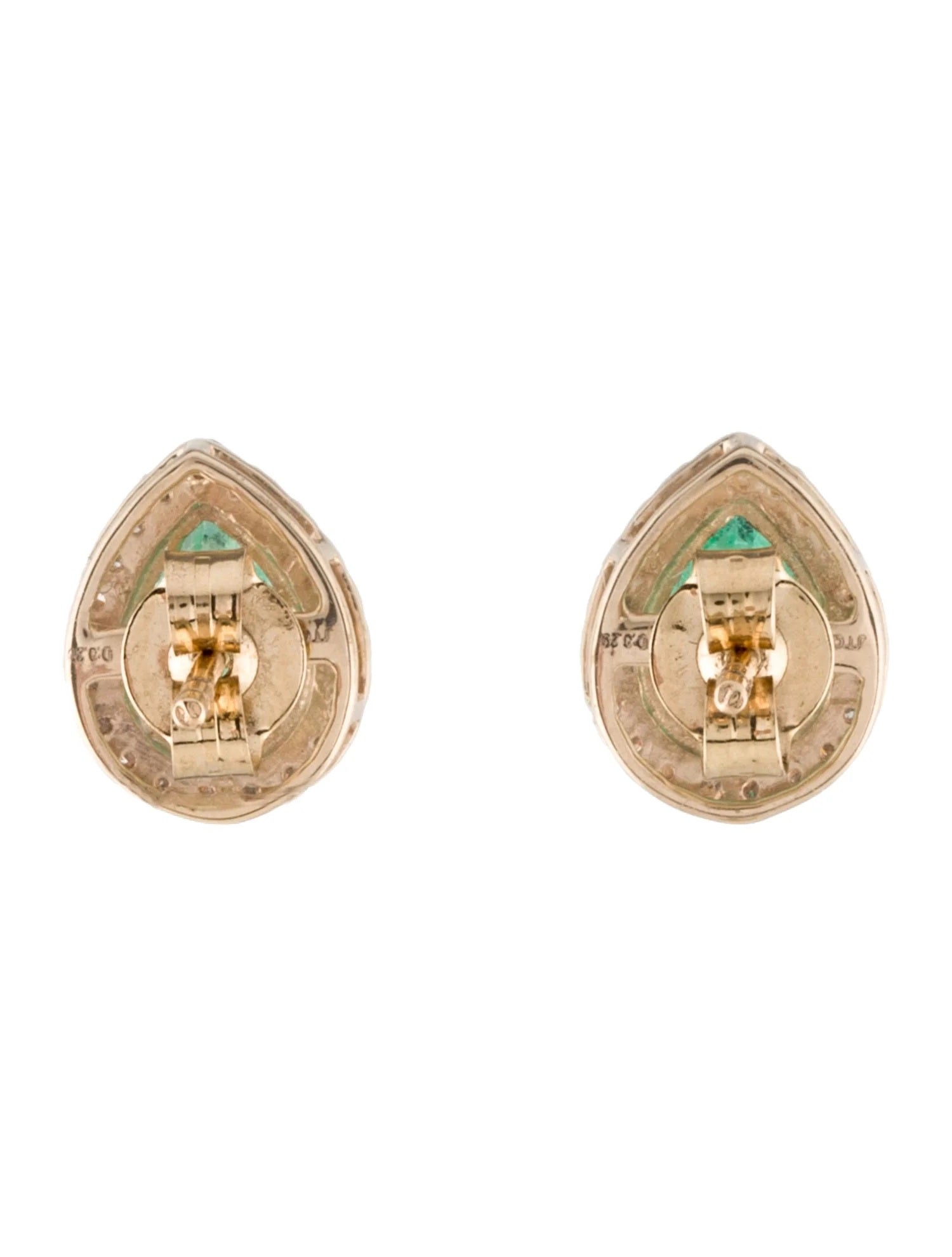 14K Emerald & Diamond Stud Earrings