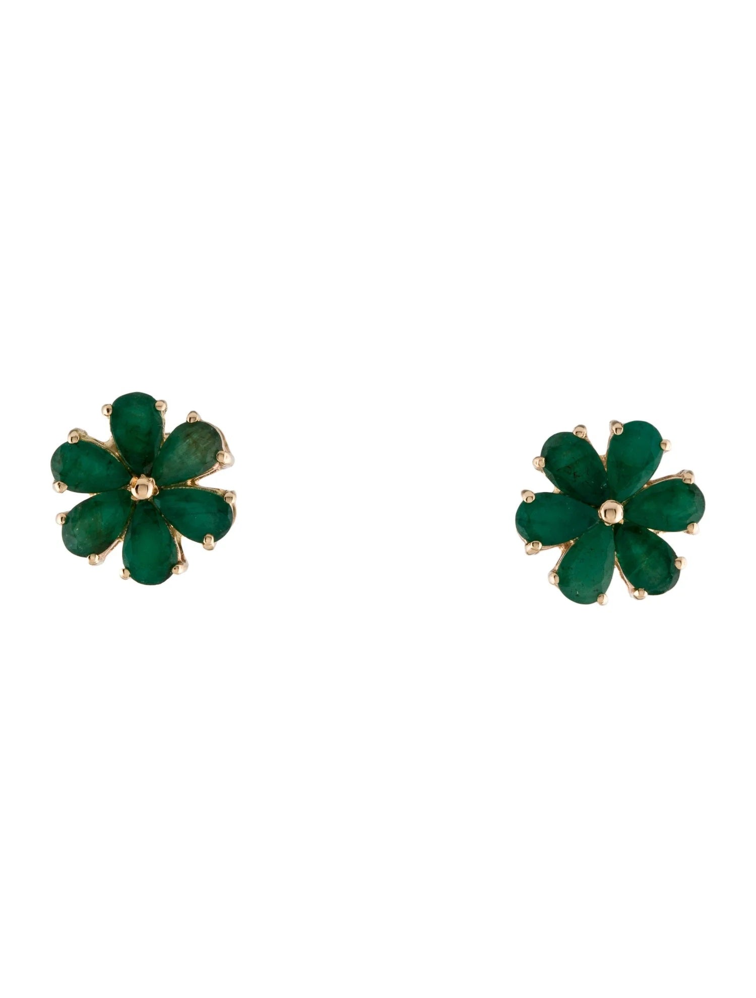 14K Emerald Flower Stud Earrings