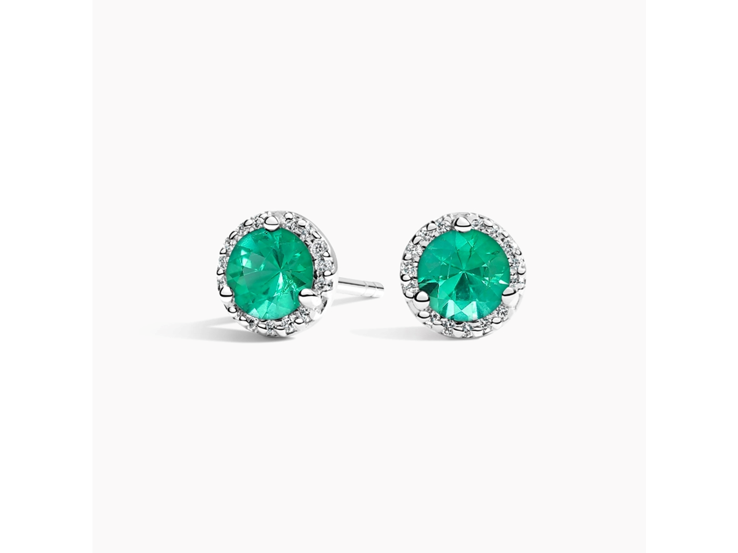 18K White Gold Emerald Halo Diamond Earrings 1/8 ctw