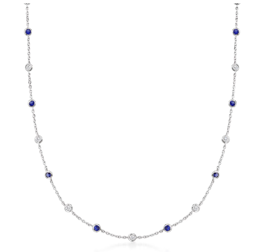 2.30 ctw CZ and 2.00 ctw Simulated Sapphire Station Necklace in Sterling Silver