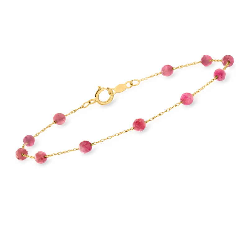 2.70 ctw Pink Tourmaline Bead Station Bracelet in 14kt Yellow Gold