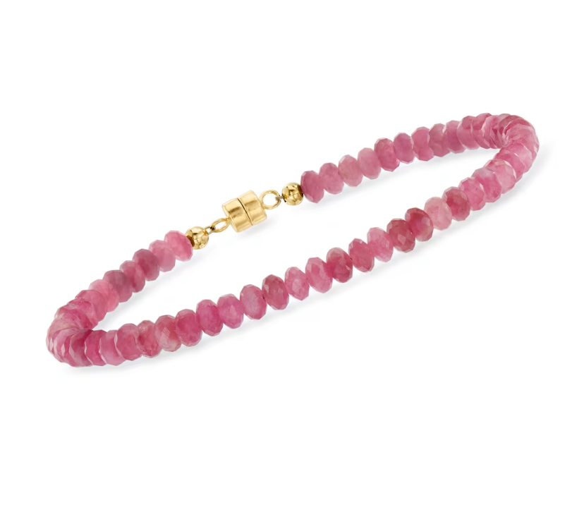20.00 ctw Pink Tourmaline Bead Bracelet with 14kt Yellow Gold Magnetic Clasp. 7"