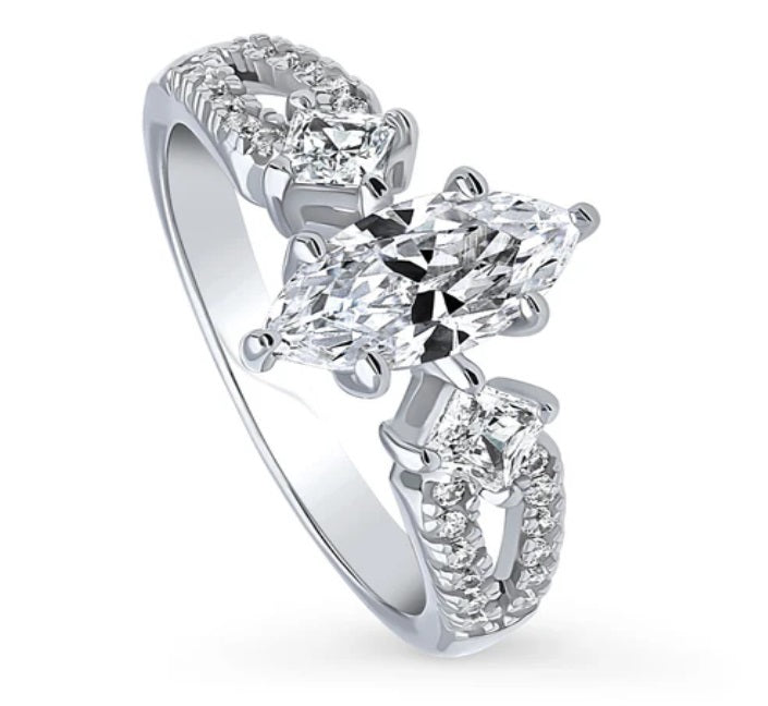 3-Stone Marquise CZ Split Shank Ring in Sterling Silver