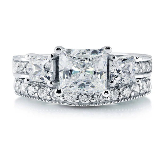 3-Stone Princess CZ Ring Set in Sterling Silver