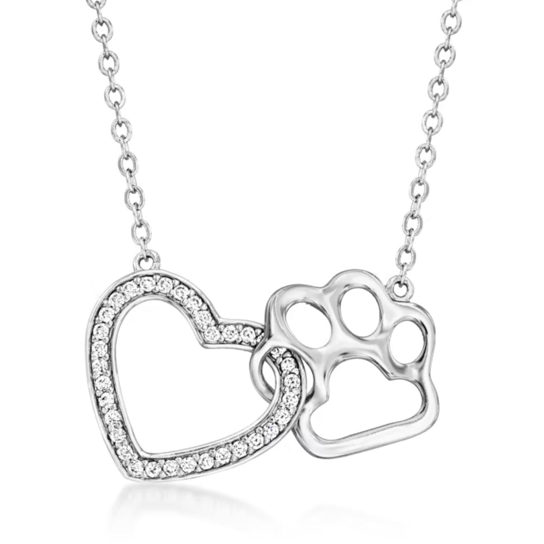 .30 ctw White Topaz Heart and Paw Necklace in Sterling Silver. 18"