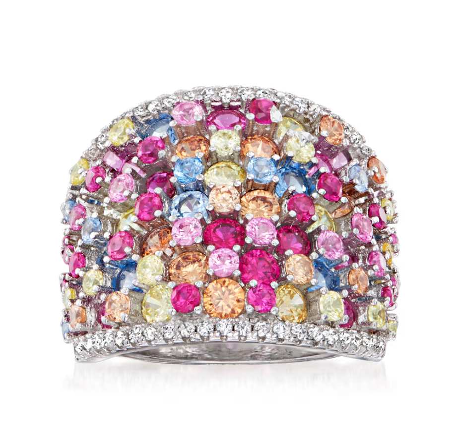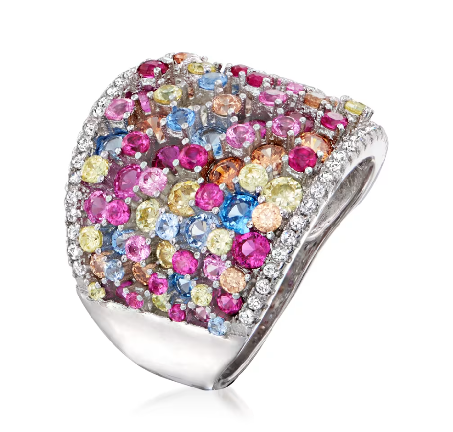 4.10 ctw Multicolored Simulated Sapphire and .20 ctw CZ Wide Ring in Sterling Silver