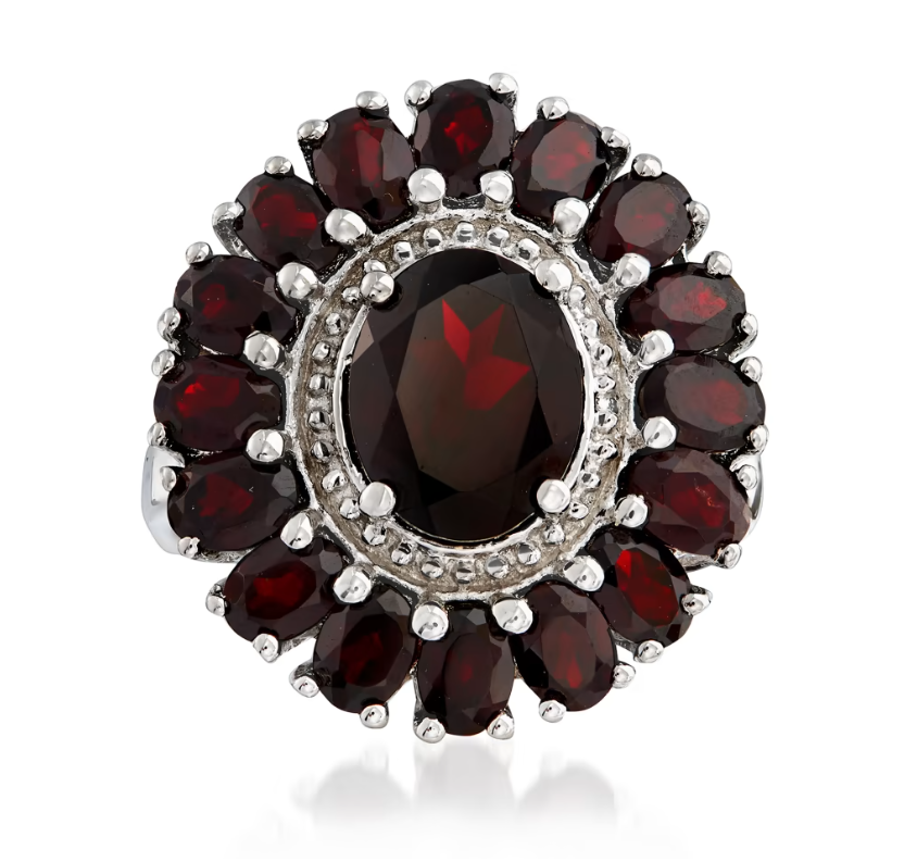 Crafted with attention to detail, this piece is perfect for those who appreciate the allure of garnets and the lustrous appeal of sterling silver. Whether worn as a statement piece for special occasions or as a luxurious addition to everyday attire, it promises to captivate and charm, making it a valuable addition to any jewelry collection.