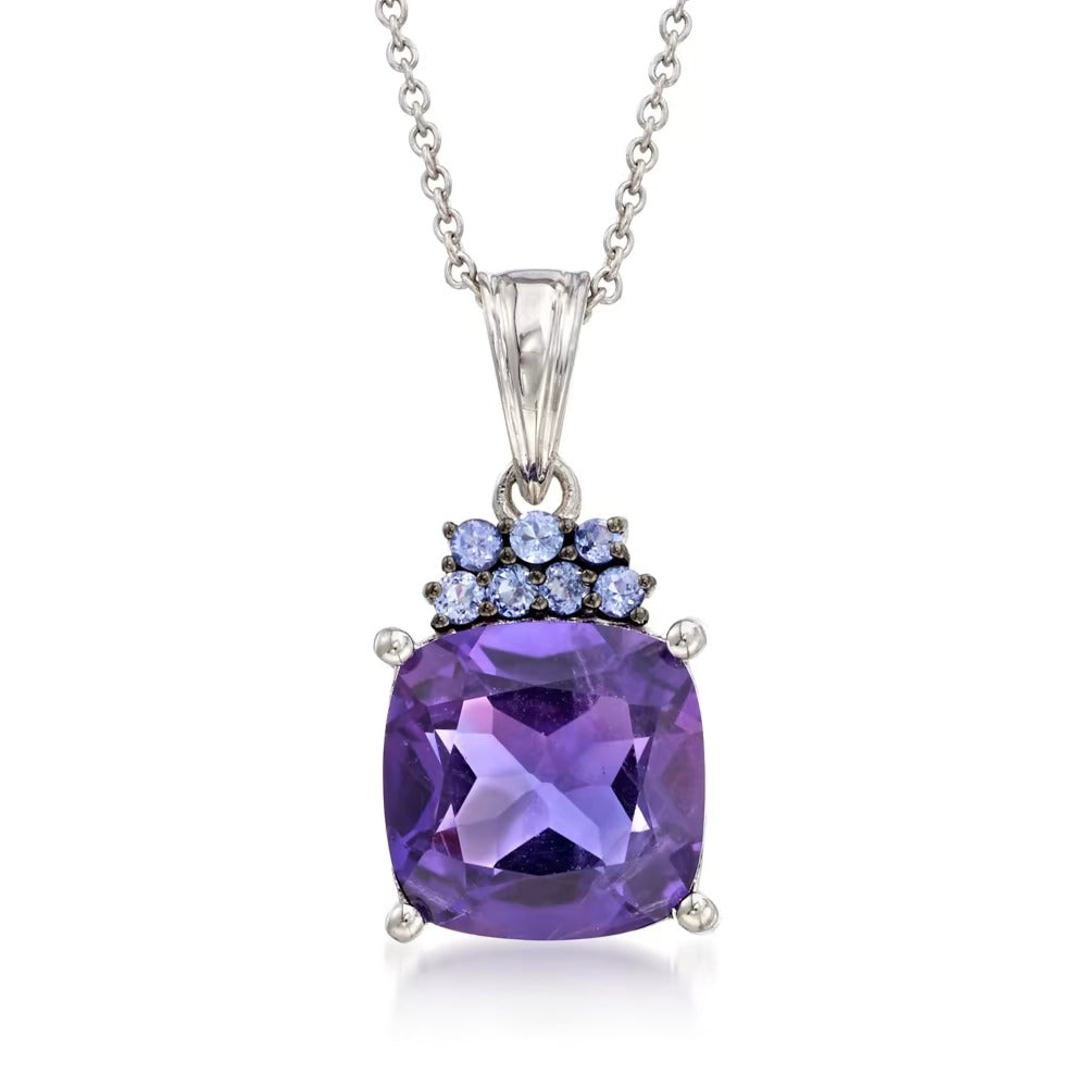 5.25 Carat Amethyst and .20 ctw. Tanzanite Pendant Necklace in Sterling Silver