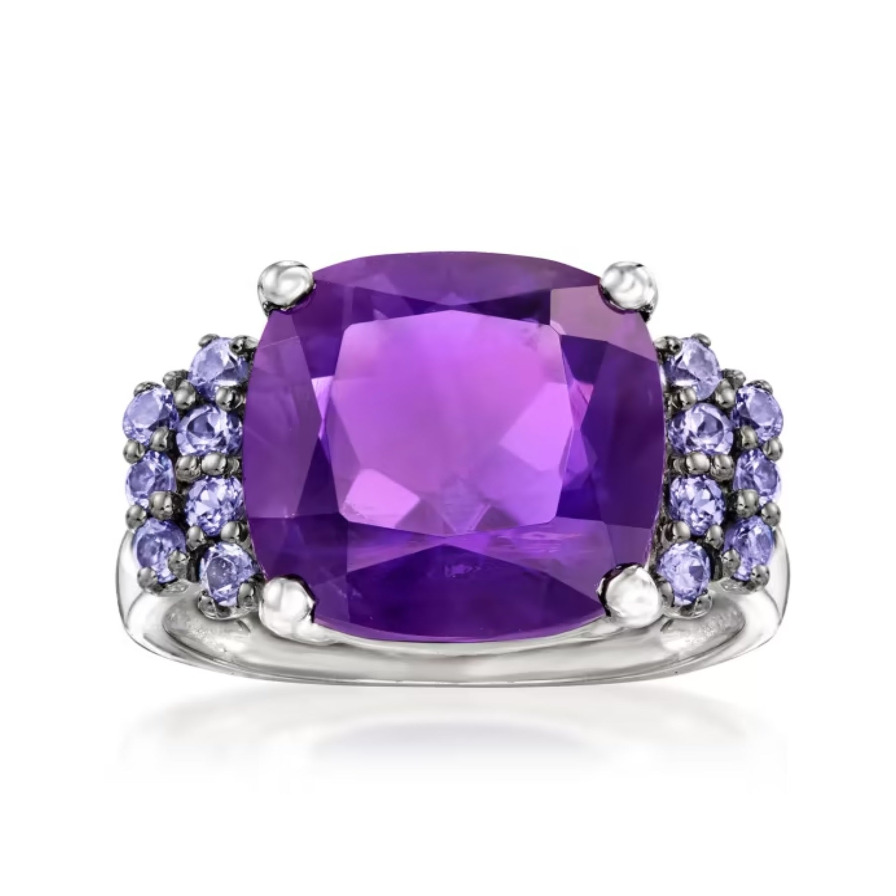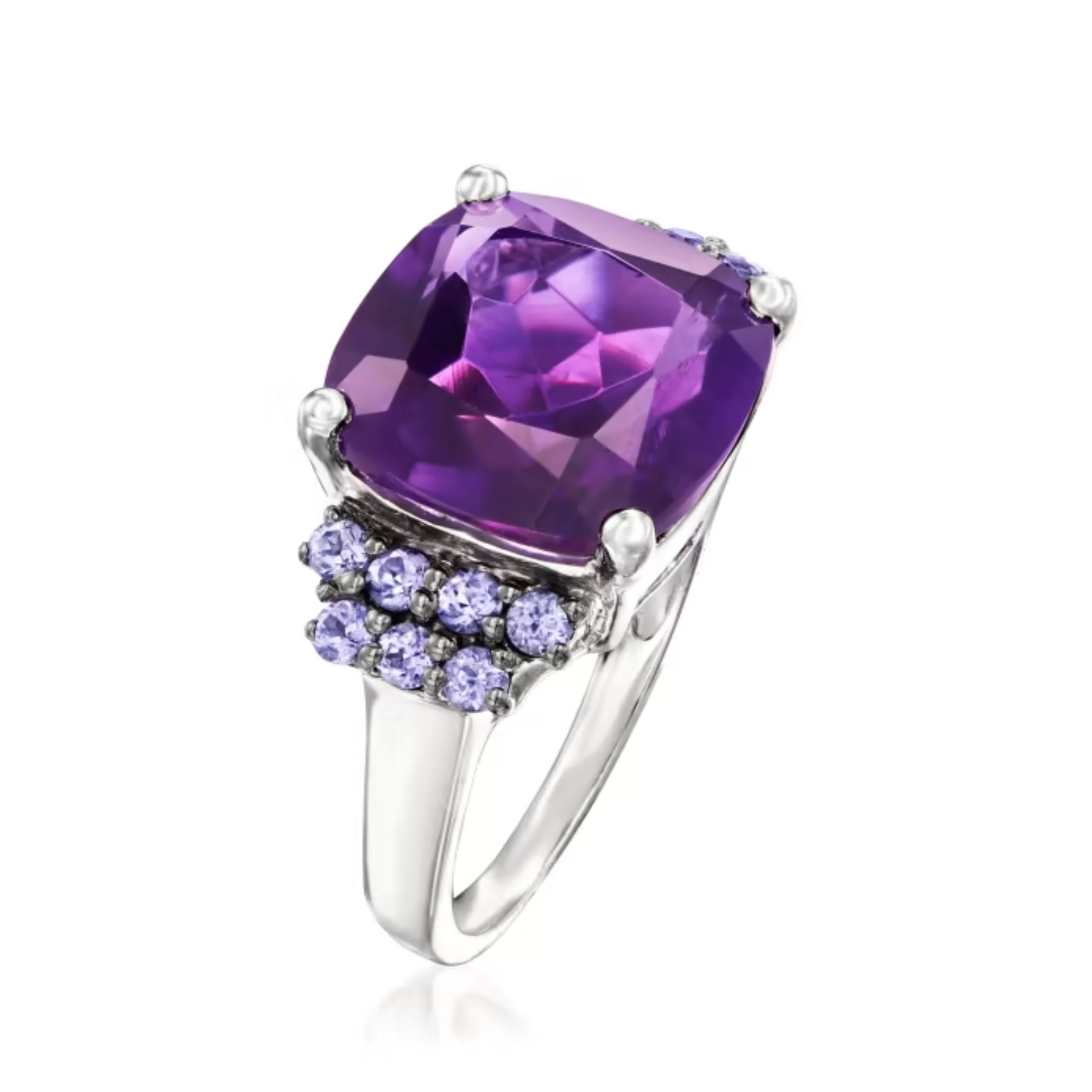 5.50 Carat Amethyst and .40 ctw Tanzanite Ring in Sterling Silver
