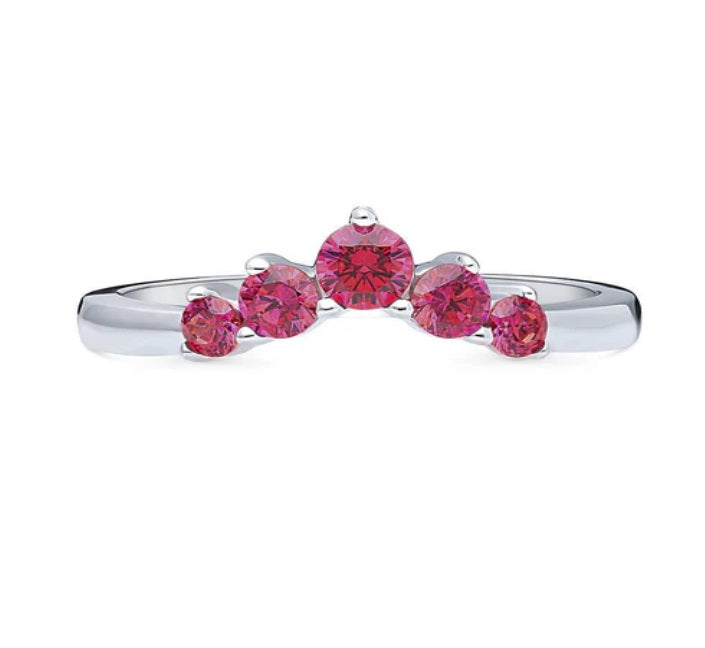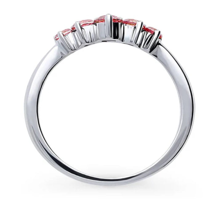 Description: Fashioned from sterling silver with rhodium plating, this exquisite ring showcases a total of 0.51 carats of round red cubic zirconia stones set in a pave style. Its elegant 5-stone wishbone V-shaped design symbolizes significant milestones in life, while the ring itself measures 3mm in height and features a 2.1mm wide band. Each ring comes with a complimentary gift box, making it a cherished and stylish accessory.