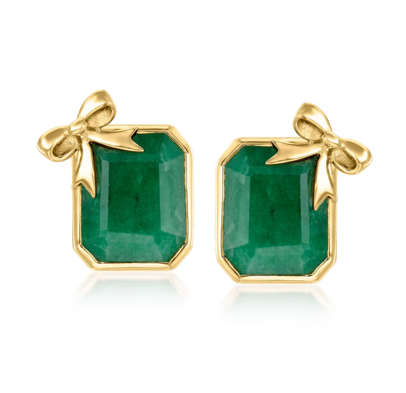 .50 ctw Emerald Bow Earrings in 18kt Gold Over Sterling