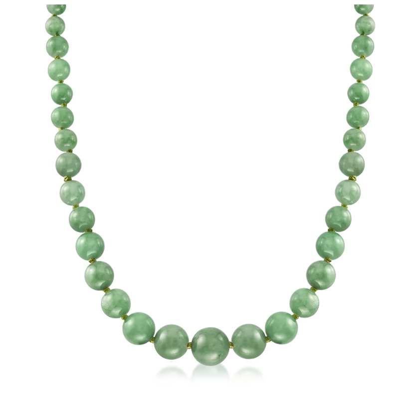 6-13mm Jade Bead Graduated Necklace with 14kt Yellow Gold