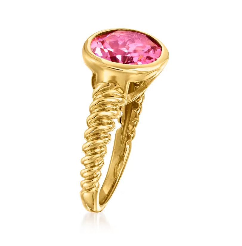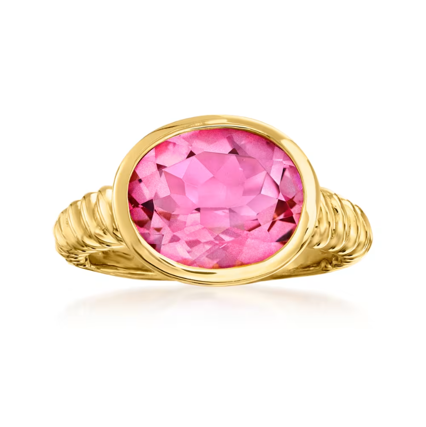 6.30 Carat Pink Topaz Ring in 18kt Gold Over Sterling