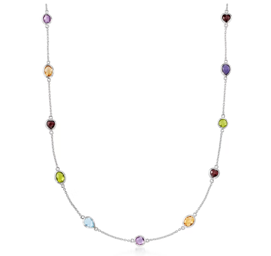 7.85 ctw Multi-Gemstone Station Necklace in Sterling Silver