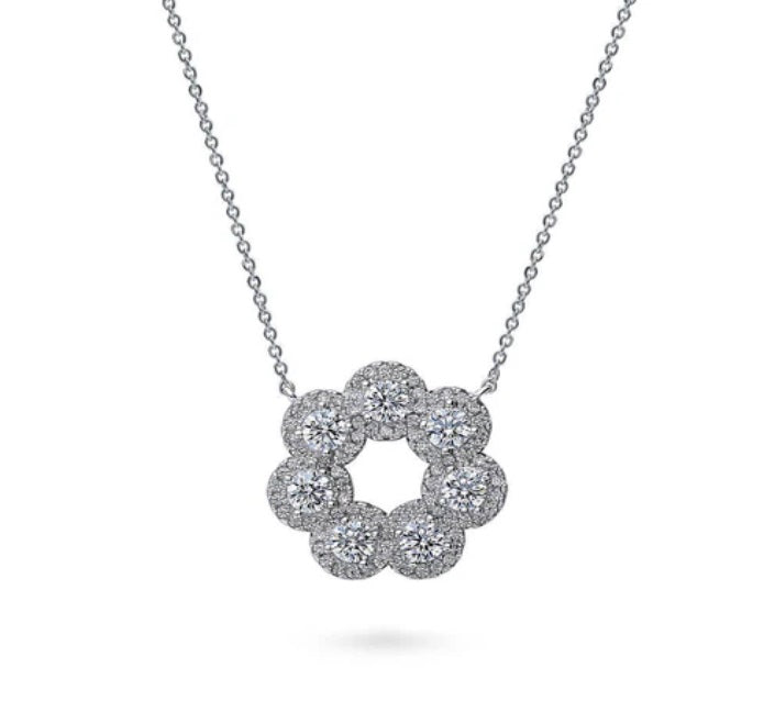 7-Stone Wreath CZ Pendant Necklace in Sterling Silver