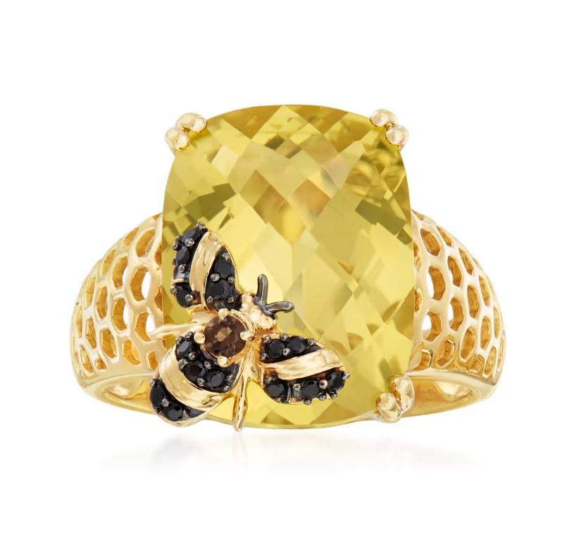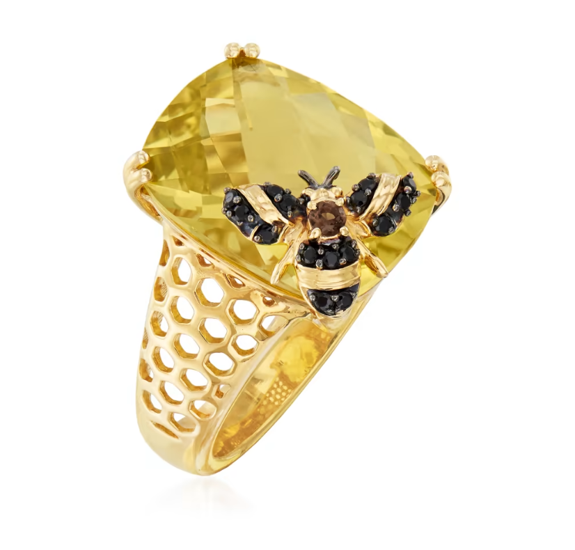 8.75 Carat Lemon Quartz Bumblebee Ring with Multi-Gemstone Accents in 18kt Gold Over Sterling
