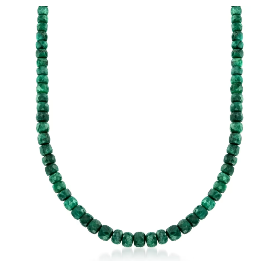 90.00 ctw Emerald Bead Necklace with Sterling Silver