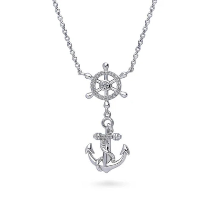 Embrace the nautical allure with this anchor pendant necklace crafted from rhodium-plated sterling silver. Adorned with premium round cubic zirconia stones totaling 0.2 carats, set in both bezel and pave settings, this necklace exudes a fun and decorative theme, enhancing your style with dazzling sparkle.