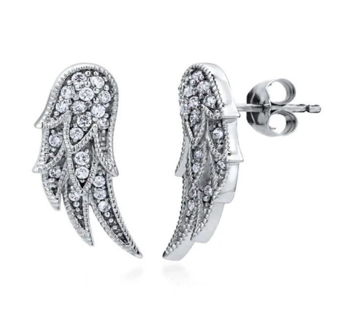 Angel Wings CZ Stud Earrings in Sterling Silver