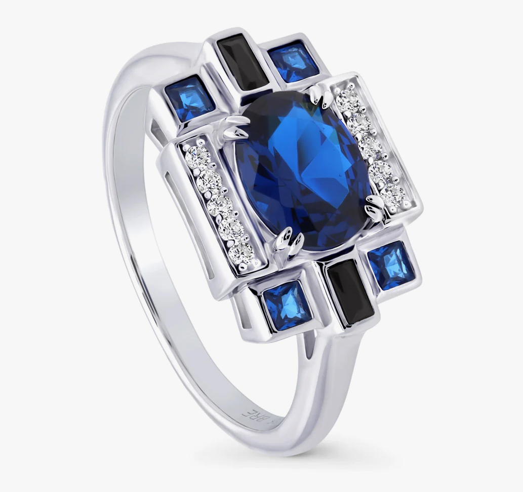 Art Deco Simulated Blue Sapphire CZ Ring in Sterling Silver