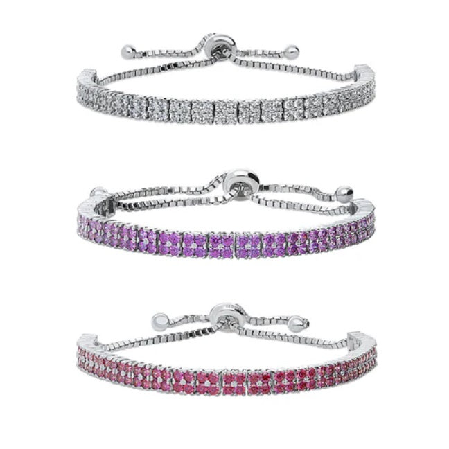 Introducing our Rhodium Plated 2 Row Bar Tennis Bracelet, adorned with premium round cubic zirconia stones totaling 2.88 carats. Crafted with stamped 925 sterling silver, this bracelet exudes elegance in its timeless design. Featuring a polished finish, adjustable length from 4 to 9 inches, and a pull tie clasp, it's the perfect accessory to elevate any outfit with its versatile sophistication.