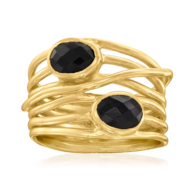Black Onyx Highway Ring in 18kt Gold Over Sterling