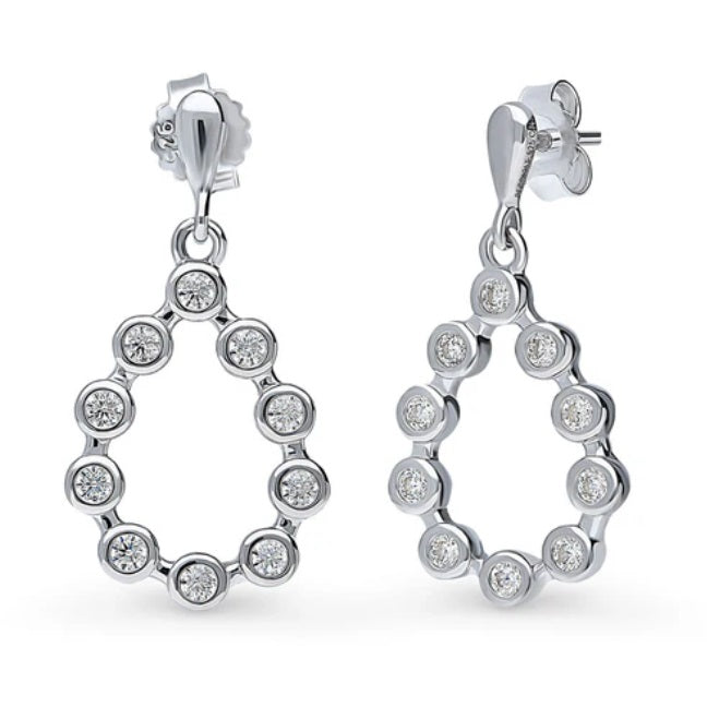 Bubble Teardrop CZ Dangle Earrings in Sterling Silver