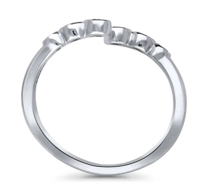 Crafted from sterling silver with rhodium plating, this bubble wrap open ring is set with a total of 0.34 carats of round cubic zirconia stones in bezel settings. The ring measures 2.5mm in height with a 2mm wide band, offering a simple yet chic addition to your everyday look. A complimentary gift box is included.