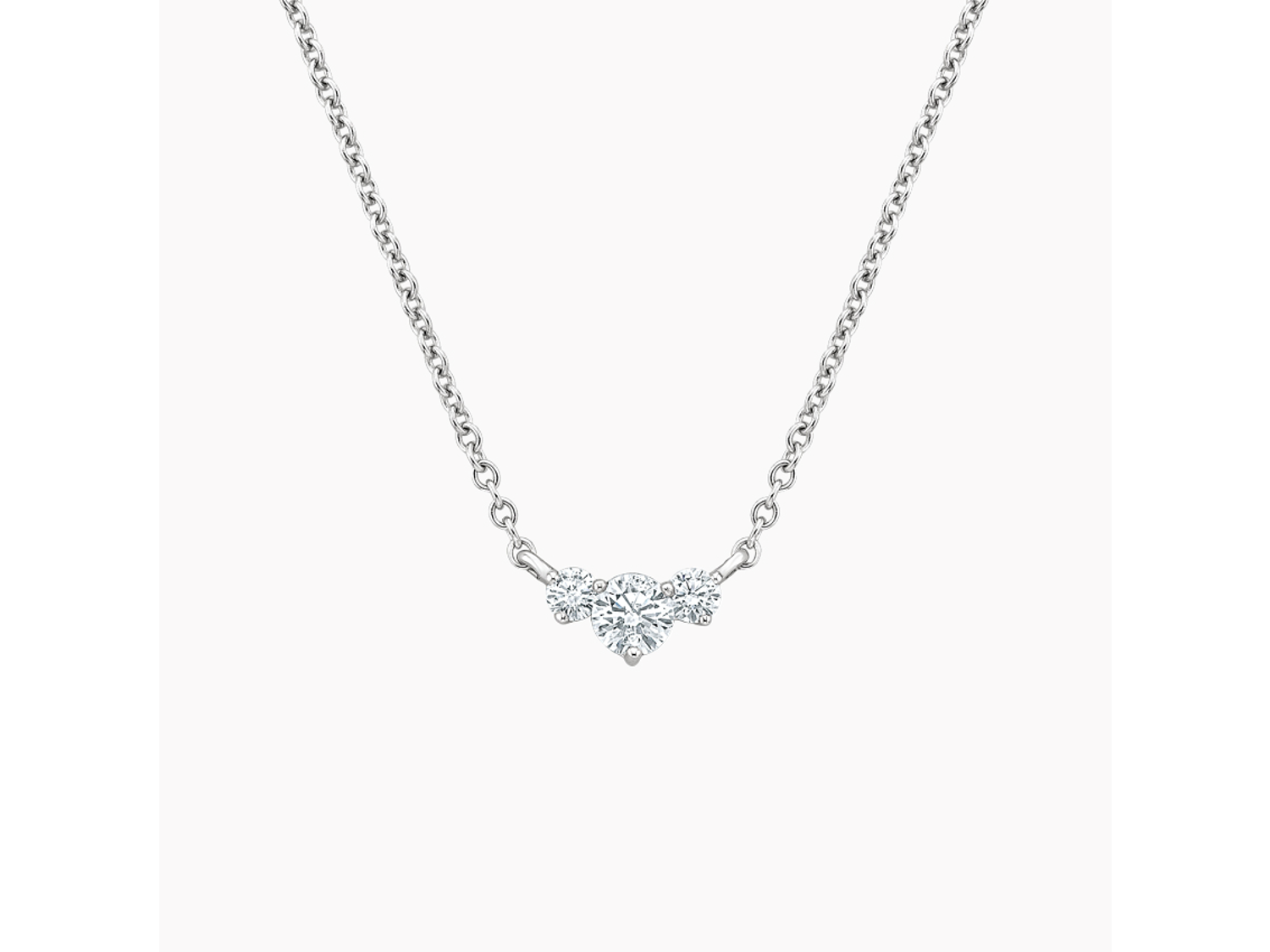 Elevate your style with the Trio Diamond Pendant. This petite and elegant pendant features three shimmering round brilliant diamonds, elegantly prong set in 18K white gold. With a total carat weight of 1/3, this pendant exudes chic and dazzling sophistication, making it the perfect accessory for any occasion.