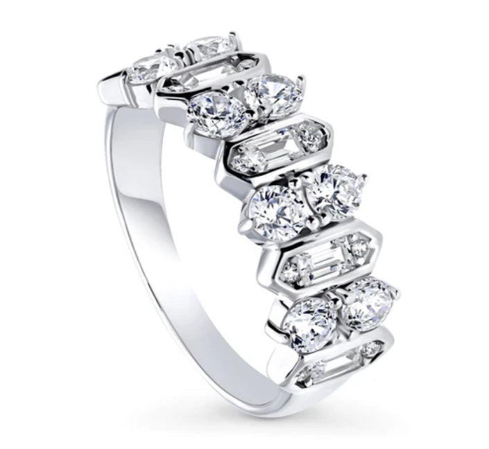 Cluster Art Deco CZ Stackable Band in Sterling Silver