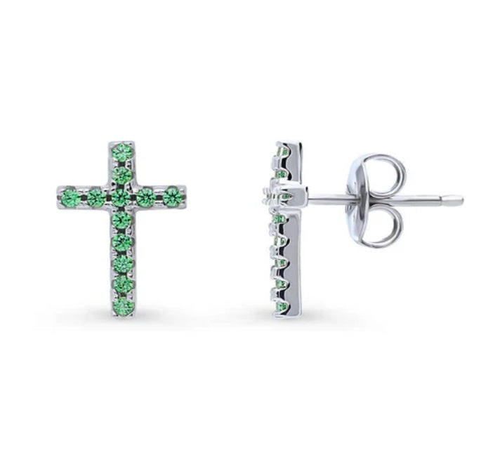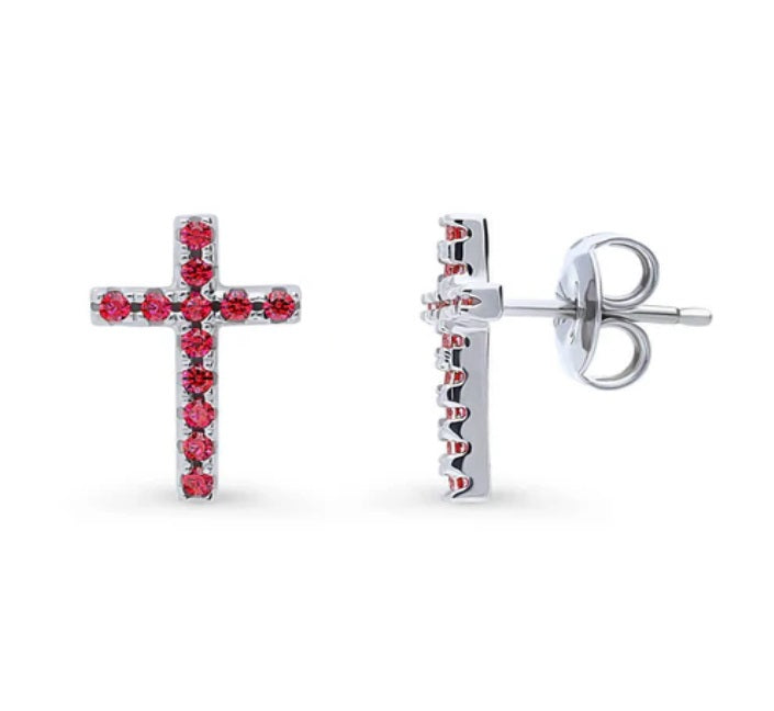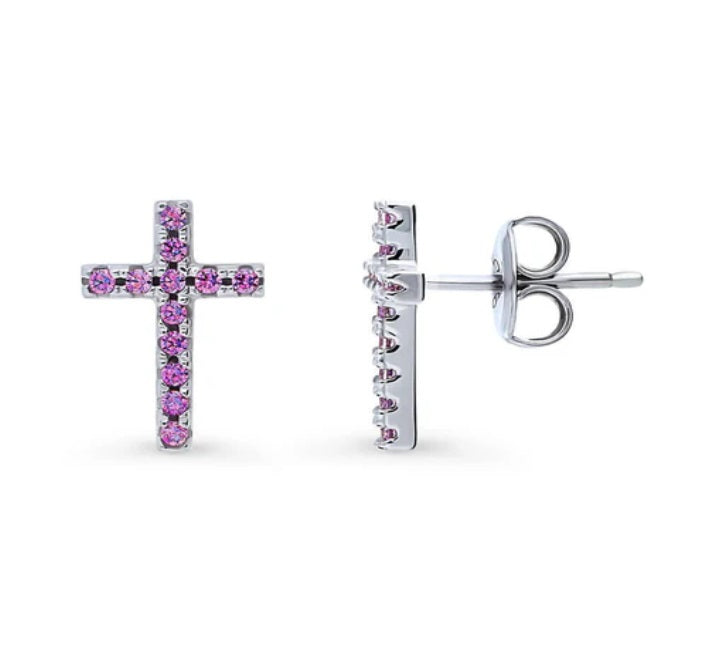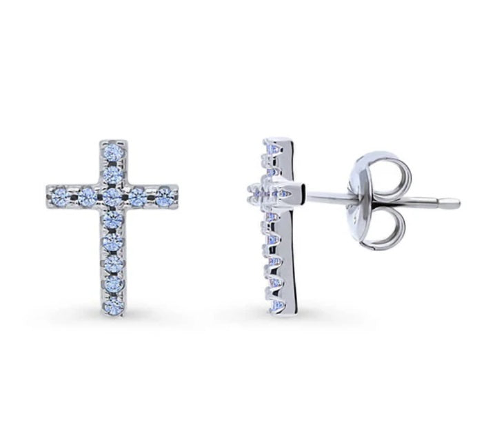 Fashioned from rhodium-plated sterling silver, these cross stud earrings exude trendy and chic allure, featuring a total of 0.24 carats of round cubic zirconia stones in a secure 4-prong setting. Measuring 0.5 inches in length and 0.33 inches in width, these earrings are adorned with center posts and butterfly backs for comfortable wear. Presented in a complimentary gift box, they serve as a stylish accessory while also symbolizing spirituality.