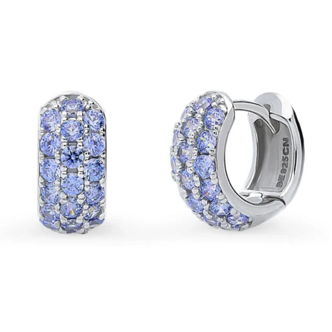 CZ Small Huggie Earrings in Sterling Silver 0.5"