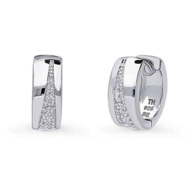 CZ Small Huggie Earrings in Sterling Silver 0.55"