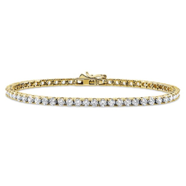 Elevate your elegance with our Sterling Silver Tennis Bracelet, featuring premium round cubic zirconia stones totaling 5.72 to 6.49 carats. Crafted with stamped 925 sterling silver and yellow gold flashing, this bracelet exudes classic charm. With a sleek 3mm width and secure box with tongue and safety clasp, it's the perfect accessory to add timeless poise to your ensemble.