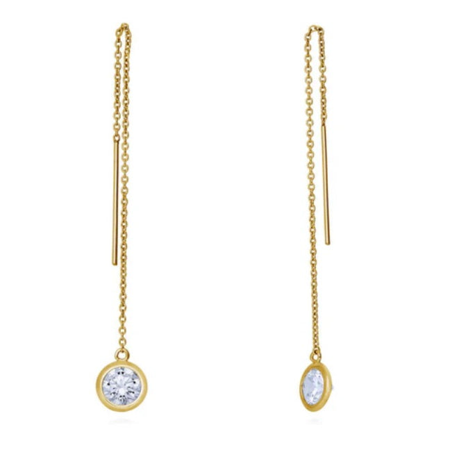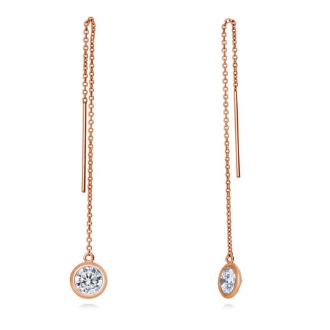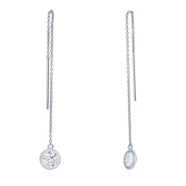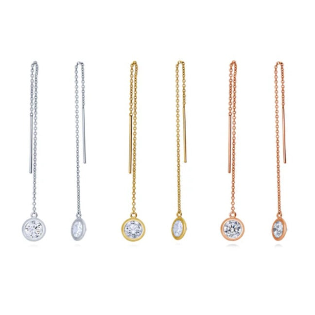 Introducing our Sterling Silver Threader Earring Set, a versatile collection featuring exquisite round cubic zirconia stones in bezel settings. Crafted with rhodium-plated, yellow gold-flashed, and rose gold-flashed sterling silver, this set includes three pairs of earrings, allowing you to effortlessly tailor your look to any occasion. With pull-through chains for adjustable length, these earrings measure 3" in length and 0.3" in width, adding timeless glamour to your ensemble. Each set contains six pieces and comes beautifully presented in a complimentary gift box.