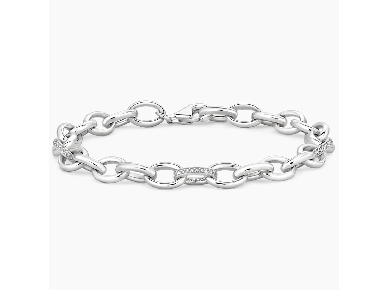 Wrap your wrist in elegance with our Silver Diamond Link Bracelet. Crafted from lustrous sterling silver, this eye-catching piece features lustrous links of precious metal accentuated by three diamond-adorned links, totaling 1/5 carat in weight. With an adjustable length and secure lobster clasp closure, this bracelet adds a touch of glamour to any ensemble, making it the perfect accessory for both casual and formal occasions.