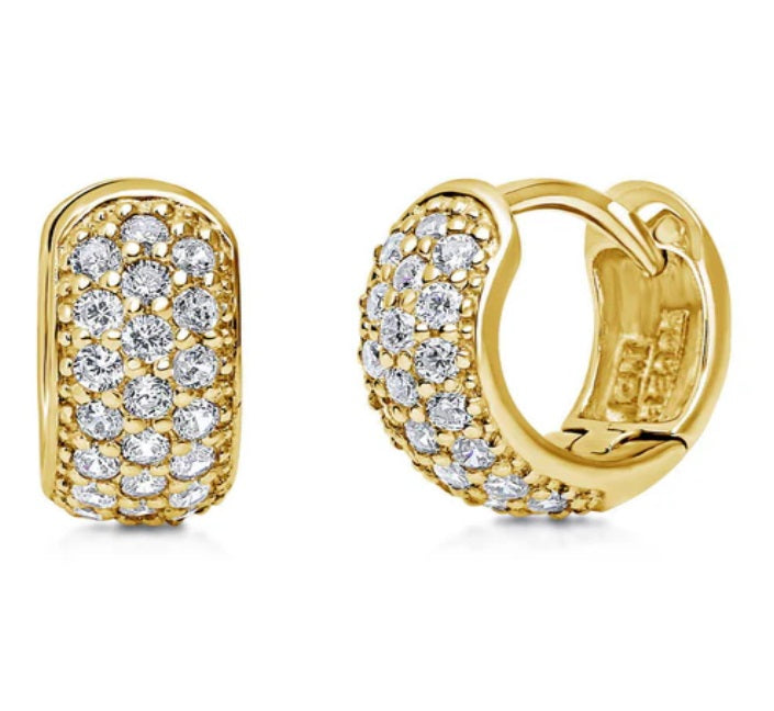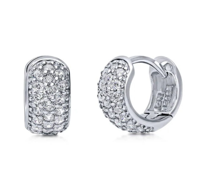 Make a statement with these exquisite dome huggie earrings, crafted from nickel-free sterling silver for optimal comfort and durability. Each earring is adorned with a collection of premium round cubic zirconia stones in a dazzling pave setting, adding a touch of sparkle to your ensemble. Petite in size yet bold in style, these earrings are ideal for those with smaller earlobes, promising to elevate any look with their undeniable charm.